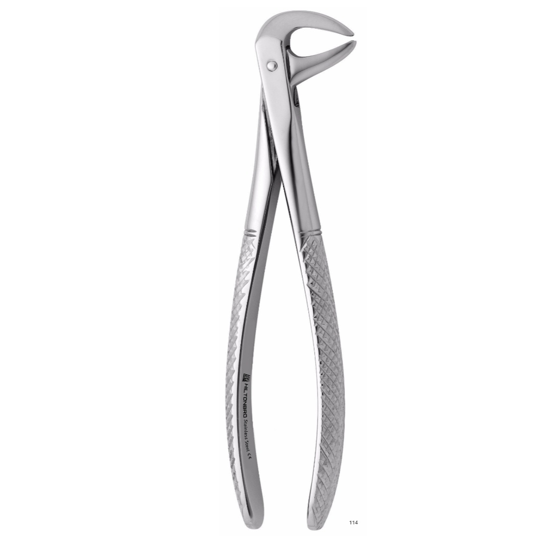 Durable and sturdy, our extraction forceps are the perfect tool to remove teeth from the alveolar bone. English pattern forceps are designed so that the fulcrum is closer to the working end, providing greater leverage, easing extraction. All HILTONBRO Extraction Forceps can be serrated unless otherwise indicated.