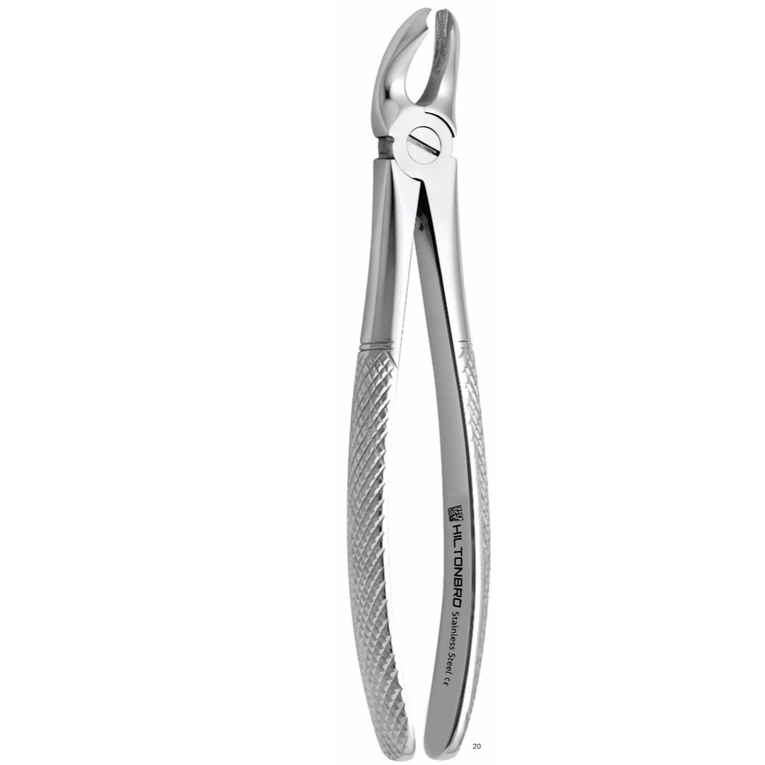 Durable and sturdy, our extraction forceps are the perfect tool to remove teeth from the alveolar bone. English pattern forceps are designed so that the fulcrum is closer to the working end, providing greater leverage, easing extraction. All HILTONBRO Extraction Forceps can be serrated unless otherwise indicated.