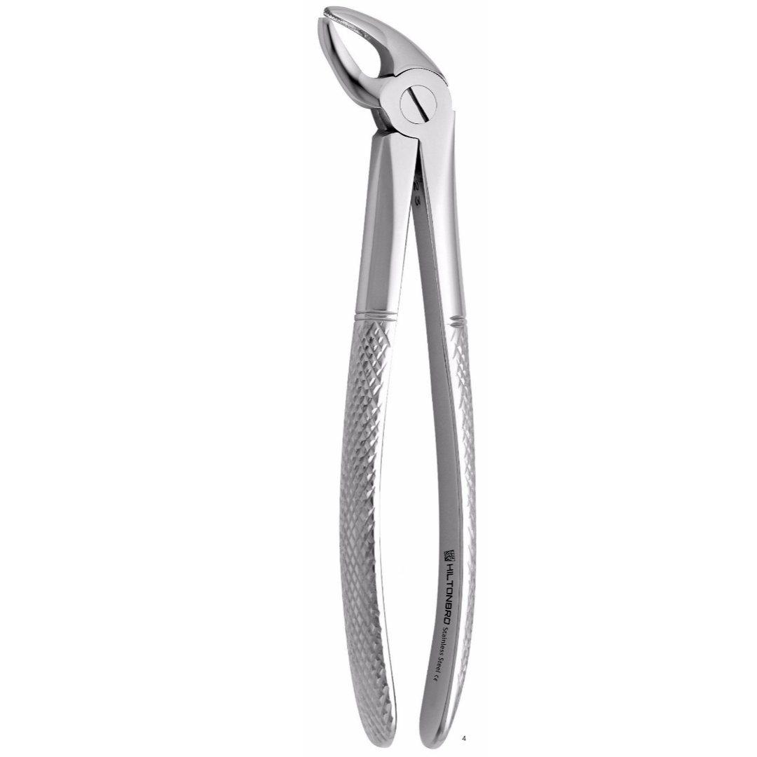 Durable and sturdy, our extraction forceps are the perfect tool to remove teeth from the alveolar bone. English pattern forceps are designed so that the fulcrum is closer to the working end, providing greater leverage, easing extraction. All HILTONBRO Extraction Forceps can be serrated unless otherwise indicated.