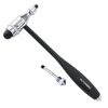 The balance-weighted chrome-plated zinc-alloy head is outfitted with large and small mallets constructed of soft silicone for precise tendon percussion.