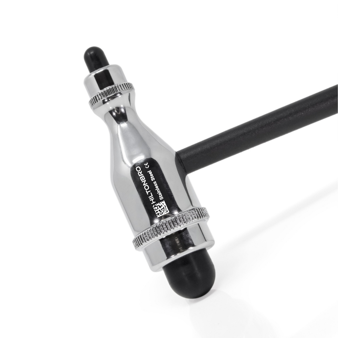 The HILTONBRO Tromner Hammer > Light > HDP Handle (aka Tromner or Troemner) is a versatile 4-in-1 dual mallet-type reflex hammer designed for eliciting myotatic and cutaneous responses in adult and pediatric patients. The ergonomic HDP handle lends the hammer a lighter weight while providing the user with greater control during percussion. This updated design is based on the classic reflex hammer invented by Ernst L.O. Trömner, MD, a director of the Neurological Hospital at St. Georg and professor at the University of Hamburg.