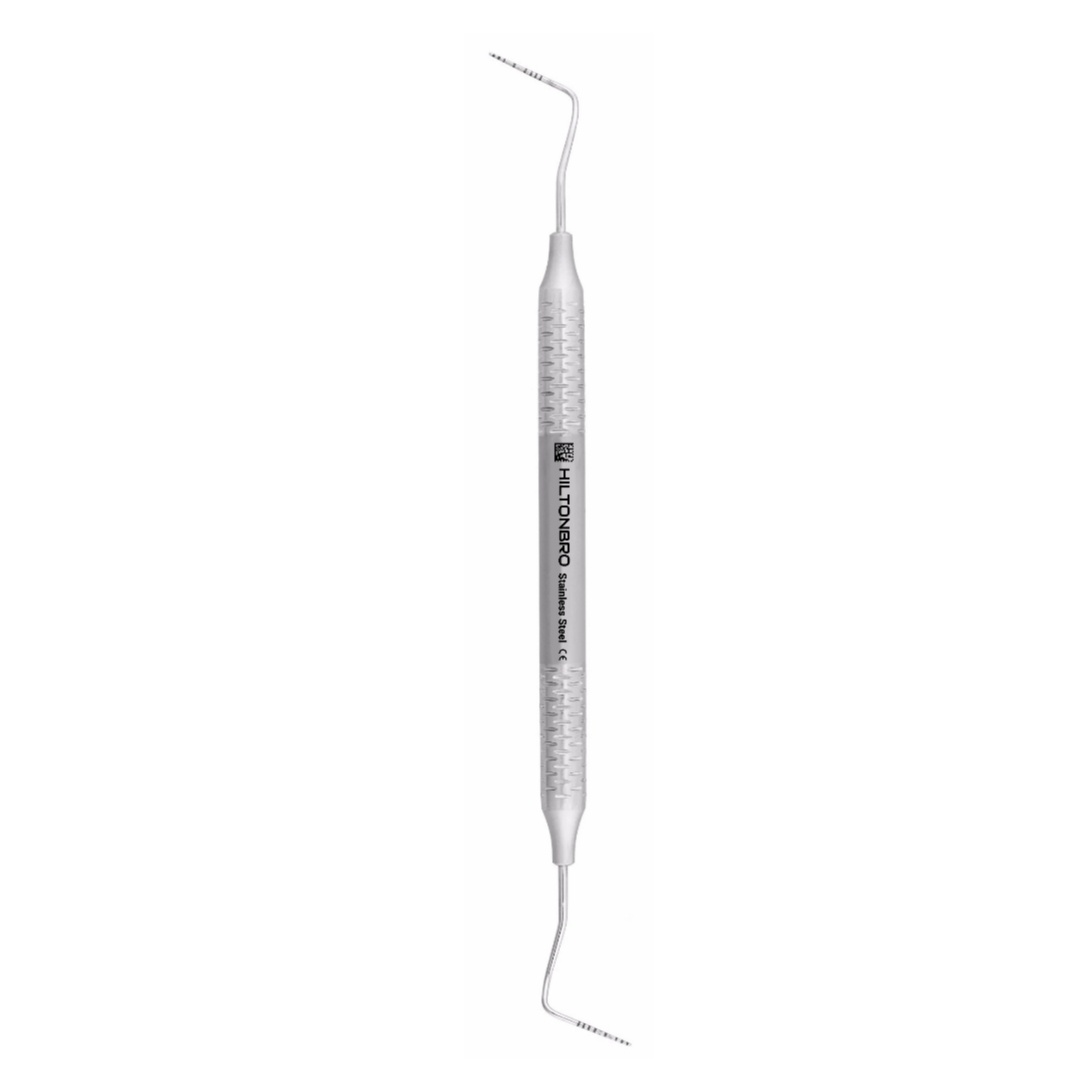 HILTONBRO’s Goldman-Fox probe is a dental instrument used to assess periodontal pocket depths, gingival bleeding, and anatomy configurations. When compared to other first generation periodontal probes, the Goldman-Fox has fewer markings which minimize confusion during reading, but the flat shank doesn’t allow easy access to tight fibrotic pockets.